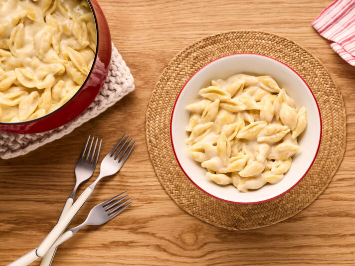 Perfect for busy weeknights, this recipe combines shell pasta with a smooth white cheddar cheese sauce made with Campbell’s® Condensed White Cheddar Cheese Soup, milk, and shredded white cheddar cheese.