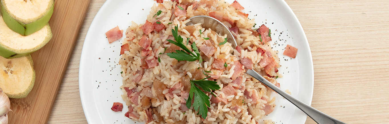 Esta receta es el perfecto ejemplo de sazón puertorriqueño. El típico arroz con cebolla es un indispensable en tu cocina, pero la combinación de nuestra Sopa de Cebolla Francesa Campbell's® (French Onion Soup Campbell's®) y Consomé de Res Campbell's® (Beef Consomme Campbell's®) hacen maravillas con la receta, dándole un sabor dulce y esponjoso. Todo junto en la olla con el tocino y mantequilla crea un platillo de arroz fácil de hacer y perfecto para toda ocasión. Sigamos con esta tradición que no hace más que alegrarnos el corazón.