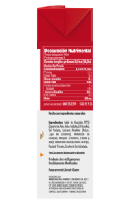 Ingredientes Caldo de Vegetales (97%) (Zanahoria, Apio, Nabo, Cebolla, Col Repollo),Sal Yodada, Azúcares Añadidos (Azúcar), Hidrolizado de Levadura, Jugo de Zanahoria, Pasta de Tomate, Mirepoix (Zanahoria, Cebollla y Apio), Saborizante Natural, Harina de Papa, Zanahoria Deshidratada.