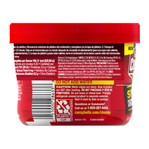 Campbell's® Chunky® Picante Gumbo de pollo, salchicha y chile con un sabor que hace agua la boca e ingredientes audaces, estas cucharadas chisporroteantes están hechas para alimentar hasta el más abundante de los apetitos. Todas y cada una de las cucharadas de esta sopa lista para comer están repletas de sabor gracias a los abundantes trozos de carne de pollo, salchicha Andouille, okra, pimientos y especias vibrantes con 15 gramos de proteína. Disfrute de esta sopa sola o pruébela acompañada sobre arroz. Campbell's® Chunky® —Soup That Eats Like a Meal®.