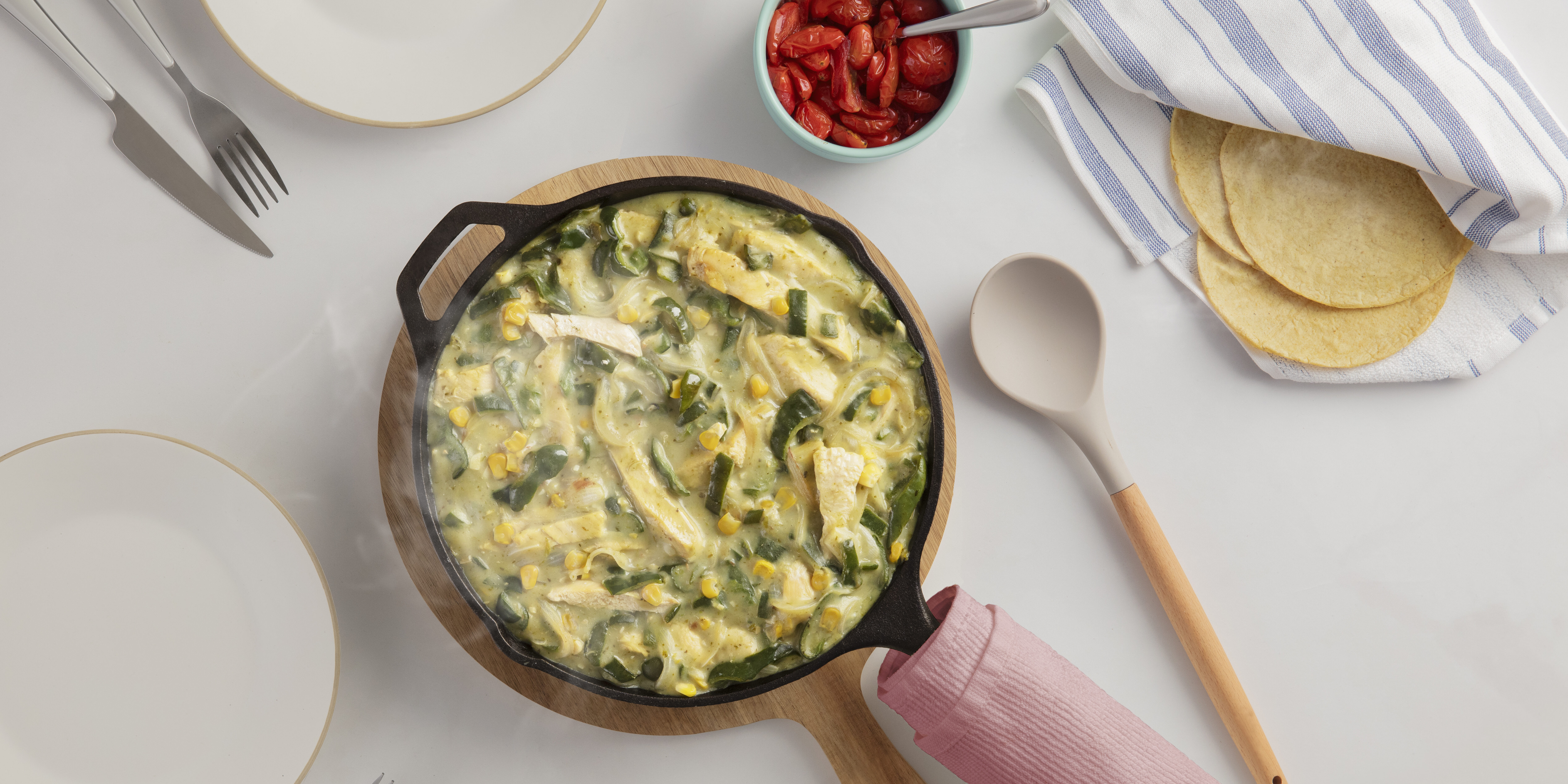 Con esta increíble receta te darás cuenta que cocinar no significa pasar horas en la cocina y todo lo que puedes lograr con pocos ingredientes. Estas Fajitas de Pollo con Crema de Chile Poblano son la receta secreta para sorprender a la familia todos los días. Puedes percibir cómo lo ahumado y el picor del chile combinan perfecto con lo dulce y tierno de los elotitos dorados, lo jugoso del pollo, mezclado con la Sopa Crema Condensada de Chile Poblano Campbell's®. Y todo esto en tan solo 45 minutos.