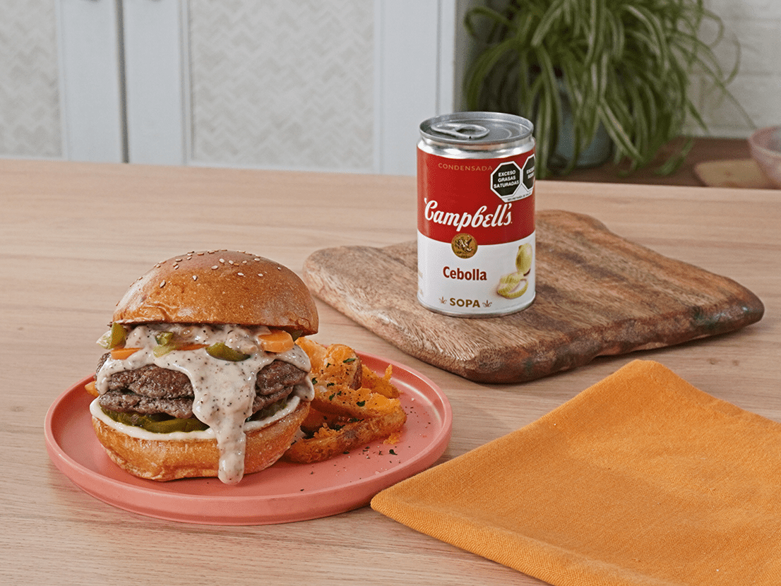 Hamburguesa con salsa de cebolla y queso