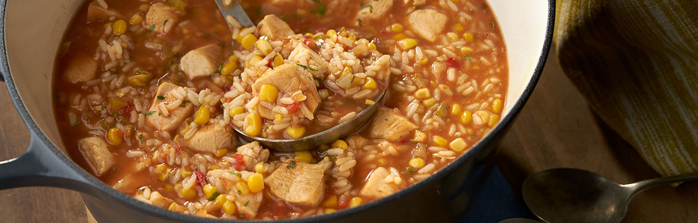 When you're looking for a hearty, satisfying soup that's packed with flavorful ingredients, this is the soup for you. It's loaded with chicken, corn, and rice, and it gets a burst of great flavor from salsa, cilantro and lime.