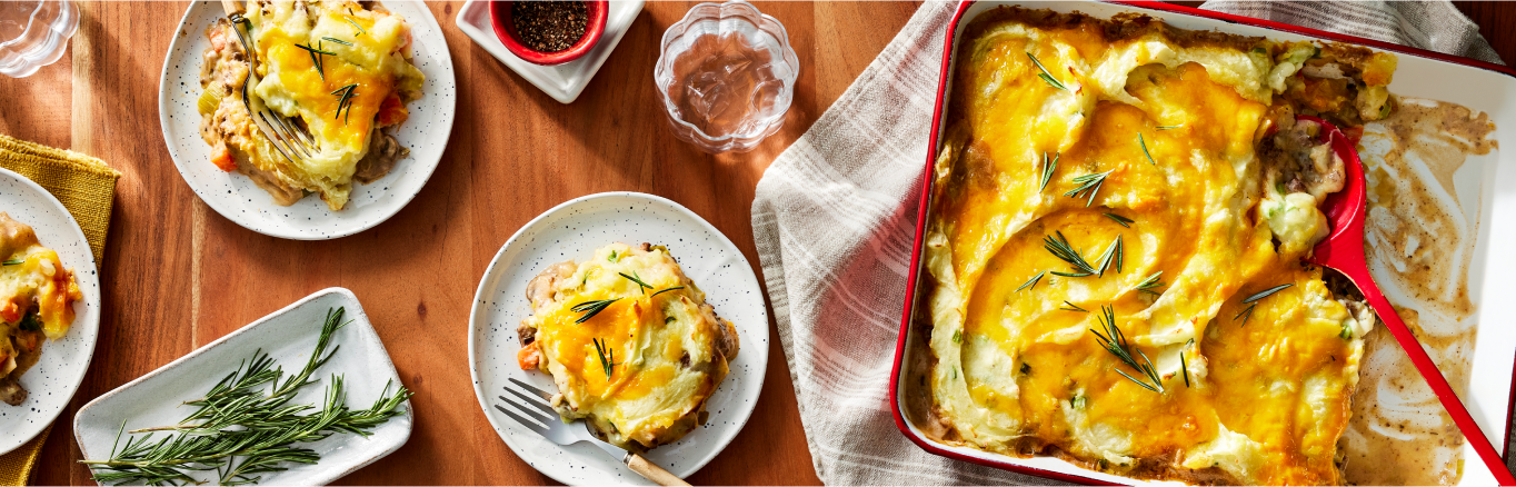 Busy night? No problem! This Shepherd’s Pie comes together quickly, thanks to convenient pantry staples and flavor-packed Campbell’s® Cream of Mushroom Soup. Want to switch it up? Go ahead and personalize it, from the meaty layer to the creamy mashed crown!