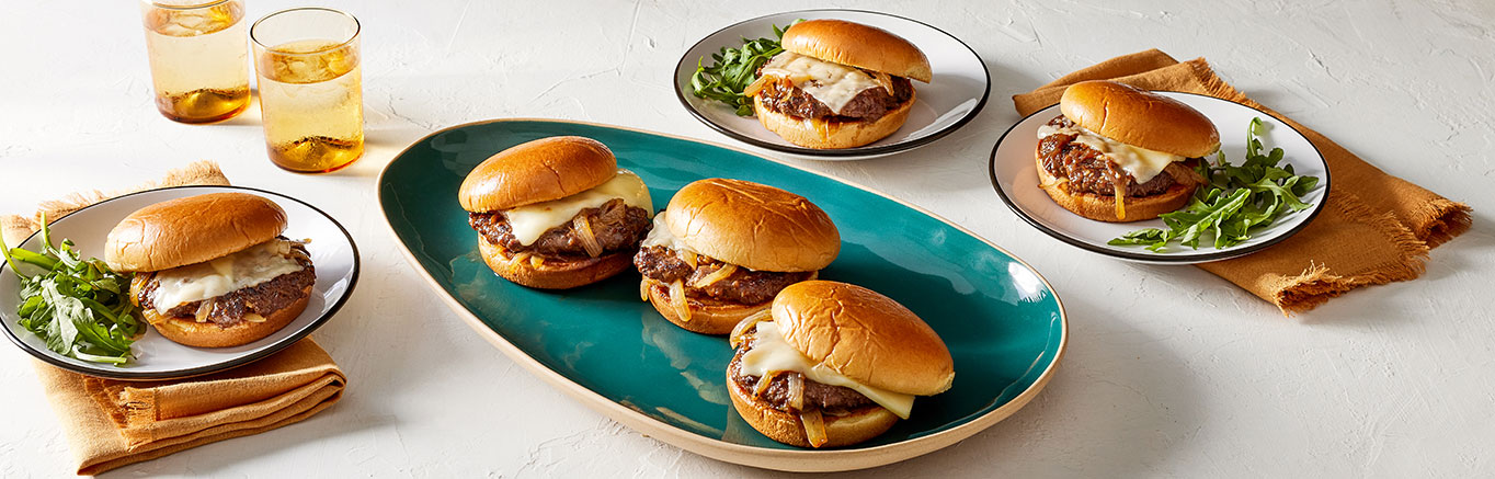 Adding some Campbell’s® French Onion Soup to ground beef is an amazing way to amp up your burgers’ flavor, while turning your patties into smashburgers cuts down on cooking time and gives you those deliciously crisp, lacy edges. Toss in some fresh caramelized onion and Swiss cheese and you’ve just elevated burger night.