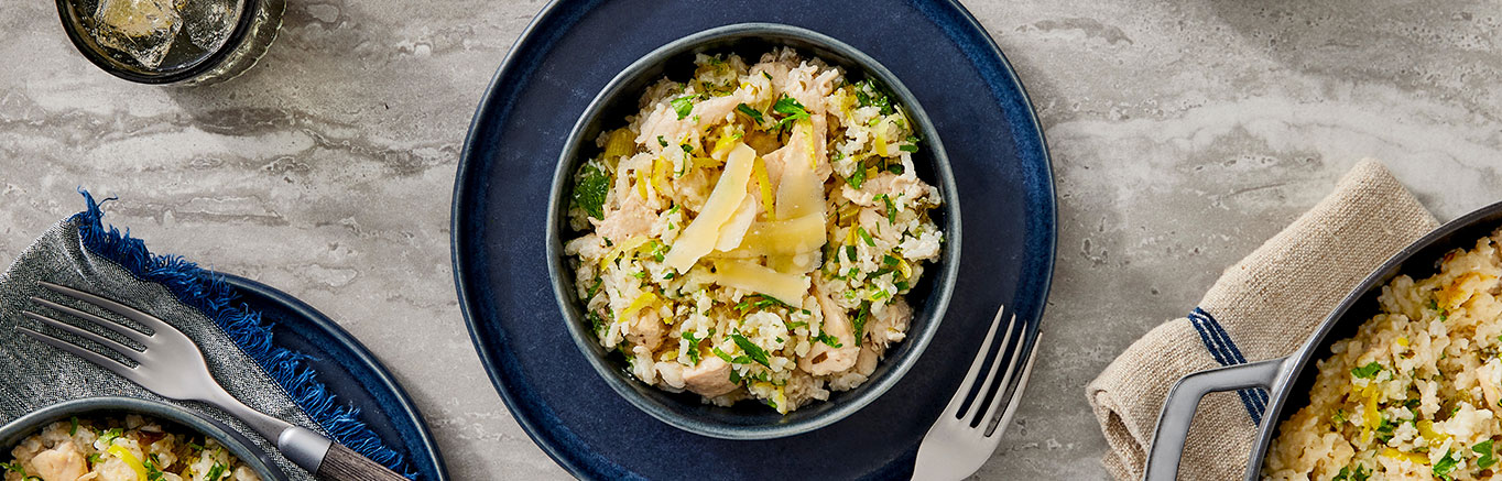 This No Peek Baked Risotto with Chicken takes everything you love about classic risotto and skips the need for stovetop stirring, so you can enjoy all the creamy, cheesy goodness with a fraction of the work. Gluten free cream of mushroom soup provides the risotto with the classic silky texture, and serves as a canvas for the flavors of garlic, fresh parsley, cracked black pepper and lemon. Even better, this risotto recipe cooks in a single dish, casserole style, making cleanup easy. Just mix the ingredients, cover with foil (remember, no peeking!), and bake.