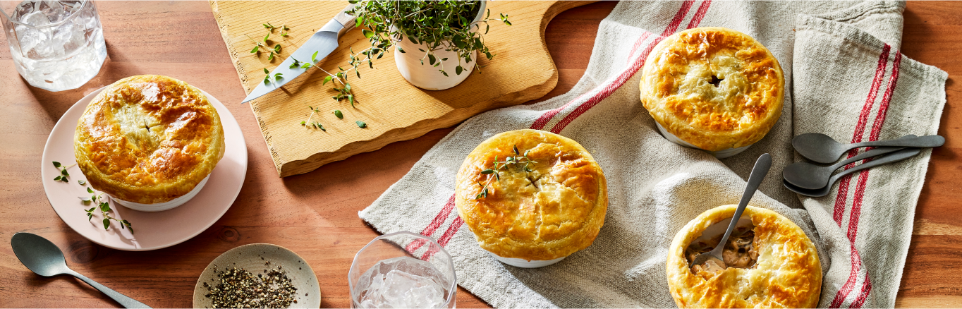 Make your next batch of beef stroganoff extra celebratory by transforming the classic into individual pot pies! Campbell’s® Cream of Mushroom Soup, paprika, and sour cream deliver the dish’s signature flavor, while frozen puff pastry sheets make assembly a breeze. Pro tip: you’ll want to make extras. These pot pies happen to reheat beautifully after baking; just warm them up in a 350 degree oven and dig in.