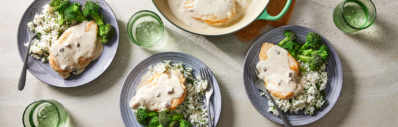Craving a quick and delicious dinner tonight? Our Ranch Chicken with Herby Cream Sauce is the hassle-free answer to your weeknight dinner dilemma. Campbell’s® Condensed Cream of Mushroom Soup is the umami-packed base to this dish’s robust sauce, made extra zesty with ranch dressing mix. With such simple-to-use ingredients, you’ll have a mouthwatering dish on the table in just 30 minutes!