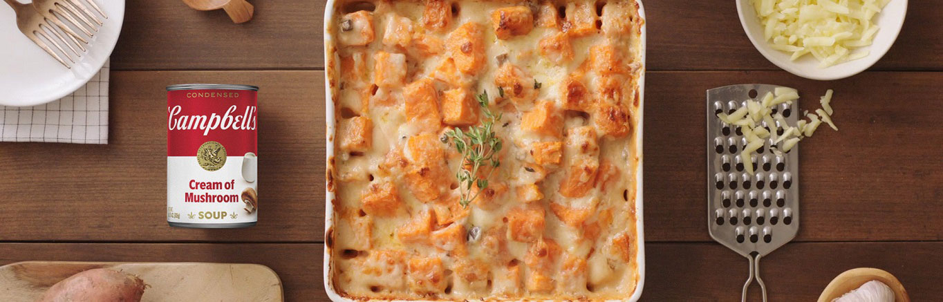 If you want a side dish recipe that takes center stage make our Savory Sweet Potato Bake. It uses ingredients that you'll likely have on hand and takes only 10 minutes to pull together. The end result is a creamy, cheesy sweet potato bake that the whole family will love.