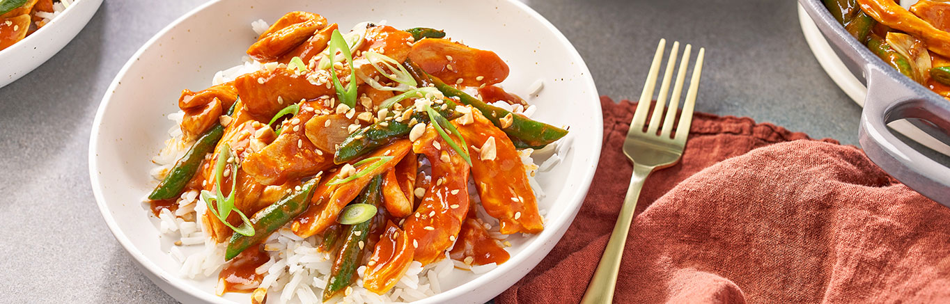 You have chicken and green beans on hand- now how do you turn it into dinner? This Spicy Chicken Stir-Fry with Green Beans recipe makes it quick and easy. Start with some Campbell's® Condensed Spicy Tomato Soup. It's the slightly sweet, spicy base for an easy stir-fry sauce- just add ginger, garlic, soy sauce and brown sugar. Stir-fry the chicken and green beans, then add the delicious sauce to finish. You can serve it over a pile of hot cooked white or brown rice, or even some rice noodles. Try it sprinkled with chopped roasted peanuts and sliced green onion- a delicious dinner is served!