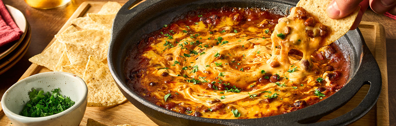 Elevate your appetizer game with the ultimate Spicy Mexican Chili Cheese Dip—a crowd-pleasing blend of rich cream cheese layered with the robust flavors of Campbell’s® Chunky® Spicy Mexican-Style Chili with Beans and topped with a molten blanket of melted cheese. This dip strikes the perfect balance between creamy, spicy and cheesy—a true flavor explosion that will have everyone reaching for another chip.