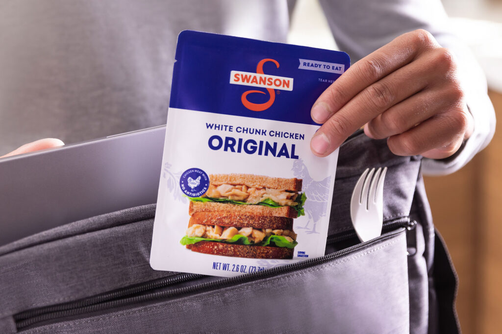 Swanson® Chicken Pouches are a convenient and delicious way to add high-quality protein to your meals and snacks, with at least 11g of protein and only 70-80 calories in each pouch. Perfect for sandwiches, salads, crackers, or straight from the pouch, these versatile pouches come in a variety of flavors. Fuel your day with ease—wherever you are!