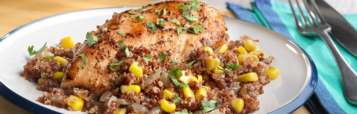 A simple combination of organic chicken stock, lime juice and lime zest work together to give fresh, citrusy flavor to chicken, corn and quinoa. It's a one skillet dish that elevates chicken to a whole new level of deliciousness.