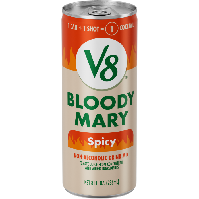 Make happy hour a little easier with V8® Spicy Bloody Mary Non-Alcoholic Drink Mix. Made with tomato juice from concentrate and a perfect blend of spices, this Bloody Mary mix packs a punch to make every sip as delicious as the next. This non-alcoholic cocktail mix is gluten-free and 100% juice, with no MSG or high fructose corn syrup. Each 8 fl oz serving contains 2 servings of vegetables* and is an excellent source of vitamin C.